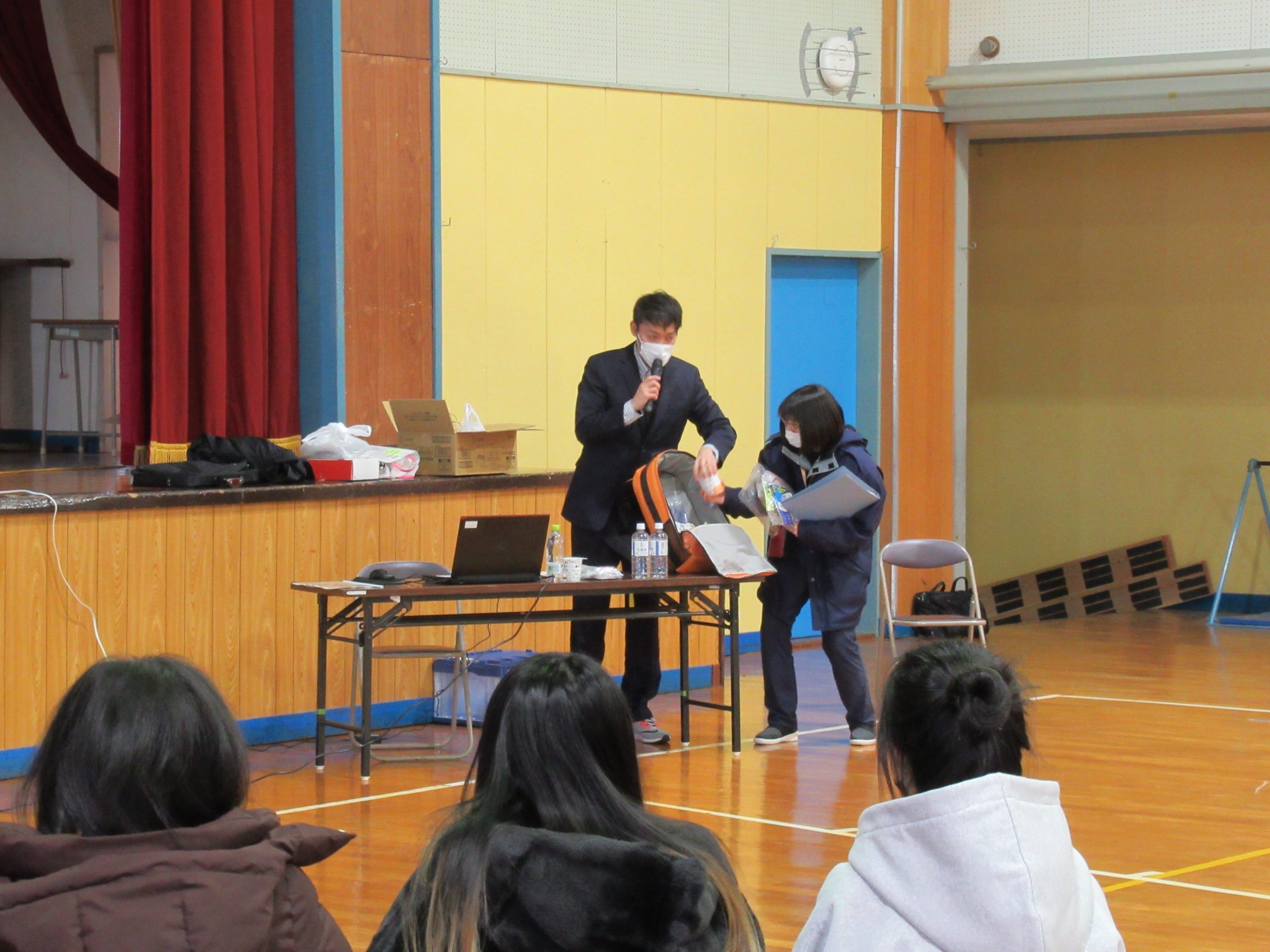 八戸市災害対策課職員を講師に迎え、地震や津波などの際、どのように行動すれば良いかや、災害に備えて準備しておくべきもの等について学びました。