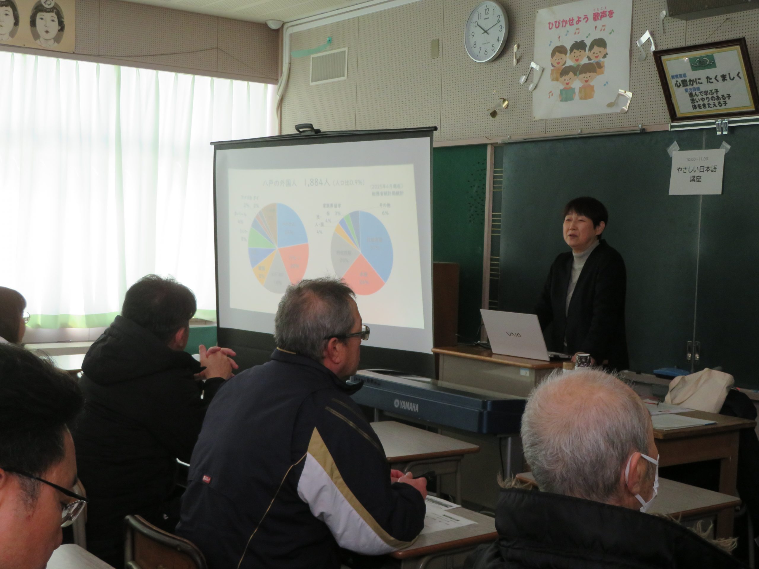 岩手大学国際教育センター長の松岡 洋子氏を講師に迎え、在住外国人をとりまく現状や、災害時に外国人が抱える不安について等を含め、具体例を交えながら、相手に配慮した伝わる・わかりやすい「やさしい日本語」の心構えや使い方を教えていただきました。